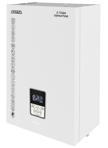 Электрокотел MK-X - 24 ZOTA арт. ZM3468426024 предназначен для автономного отопления жилых и производственных помещений. Также котел можно использовать для нагрева теплоносителя в системах «тёплый пол». В конструкции котла отопления уже имеет циркуляционный насос модели ZOTA RING 25/60, поэтому необходимость в его приобретении отпадает. Расширительный бак в котле уже установлен и имеет объем 12 литров.