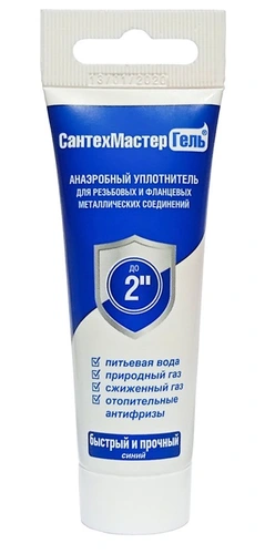Гель тюбик 35 гр. с еврослотом синий САНТЕХМАСТЕР используется для быстрой и качественной герметизации металлических фланцевых и резьбовых соединений. Обеспечивает надежную герметизацию и обладает повышенной устойчивостью к воздействию широкого спектра веществ: вода, природный и сжиженный газ, бензин, отопительные антифризы, ацетон, фреон, спирт, моторное масло, тормозная и трансмиссионная жидкость. Он быстро полимеризуется в зазоре резьбы при комнатной температуре без участия кислорода.
