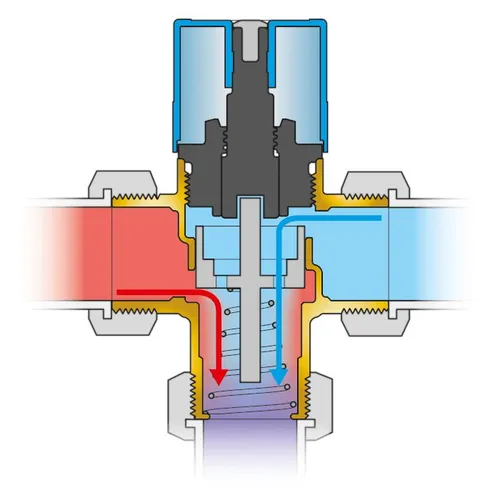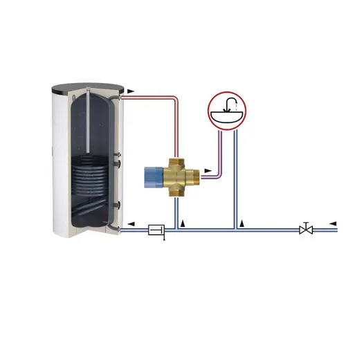 Предназначен для регулирования и поддержания заданной температуры на выходе из клапана в системах горячего водоснабжения и отопления.