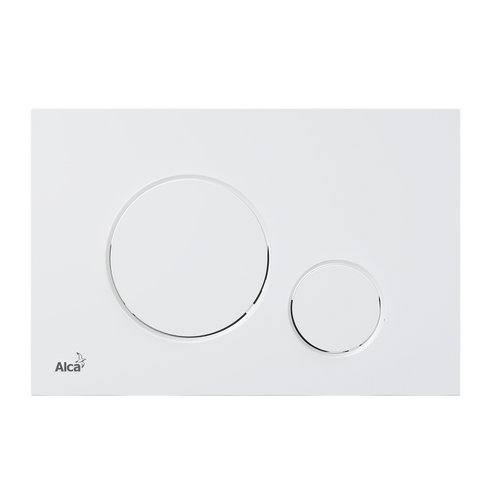 Кнопка управления для скрытых систем инсталляции M676 белый-матовый ALCA предназначена для скрытых систем инсталляции и бачков для замуровывания в стену, двойной смыв, механический принцип действия.