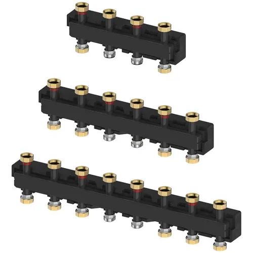 Коллектор настенный на 2+1 отопления контура МЕ66301.2. Предназначен для распределения потока теплоносителя от котла к потребителям с разными рабочими параметрами (расход, гидравлическое сопротивление, температурный график).
