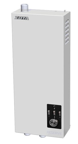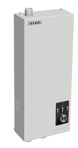 Котел электрический Reserve SET-3 ZOTA предназначен для резервного отопления помещений, бытового (дачи, коттеджи, загородные дома) и производственного назначения площадью до 30 кв. м. В этом котле есть два патрубка подачи, вместо привычного одного. Это дает много способов подключения к системе отопления. Вы можете вывести подачу вниз, и тогда ее удобно разместить вместе с газовым или электрическим котлом. А можно даже использовать оба патрубка сразу, получив два отопительных контура.