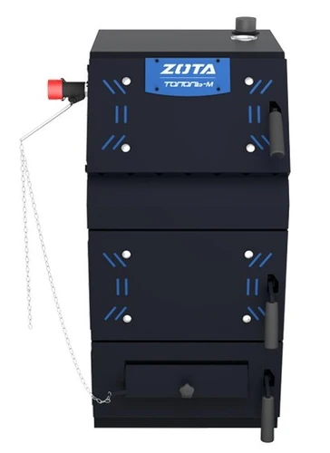 Котел отопительный "Тополь-М" 20 кВт ZOTA арт. TP4931121020 предназначен для теплоснабжения индивидуальных жилых домов и зданий коммунально–бытового назначения, оборудованных системой водяного отопления с принудительной или естественной циркуляцией. Котлы работают на твердом топливе: угле, дровах и топливных брикетах. Данная модель состоит из корпуса, топки, теплообменника, патрубка дымохода. Корпус котла выполнен из листовой стали.