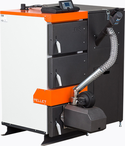 Твердотопливный котел серии TIS DUO PELLET низкотемпературный водогрейный, работающий в автоматическом режиме на топливных гранулах (пеллетах) и предназначен для теплоснабжения жилых домов и прочих зданий, оборудованных открытыми или закрытыми системами отопления с естественной или принудительной циркуляцией теплоносителя. Модель DUO дополнительно имеет возможность сжигания топлива в режиме ручной загрузки. Возможна работа котлов совместно с водонагревателем косвенного нагрева (бойлером) для приготовления горячей воды.