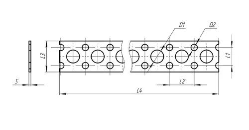 Лента монтажная перфорированная 0,8х12 мм (бокс 10 м) TANERS оцинкованная, является универсальным материалом для крепления и фиксации, удобна и проста в использовании. Применяется для стягивания, поддержки и фиксации узлов и деталей при монтаже трубопроводов, кабельных линий и других строительно-монтажных работ. Лента перфорирована по всей длине отверстиями 2,5 и 5 мм, что обеспечивает легкий и быстрый монтаж. L1 - 7 мм, L2 - 9,5 мм, L3 - 12 мм, L4 - 10 метров, толщина ленты 0,8 мм.