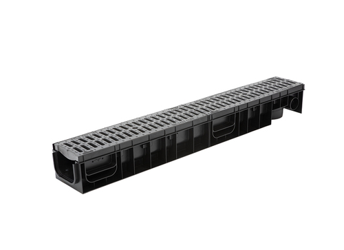 Лоток MEDIUM 100.95 h115 пластиковой кл. C250 решетка цвета металлик Ecoteck комплектуется решеткой из композитного пластика. Решетка защищает каналы от попадания нежелательных элементов, мусора и других вещей. Можно использовать не только в частном секторе, но и для строительства торговых площадей, игровых площадок, спортивных объектов или парковок.