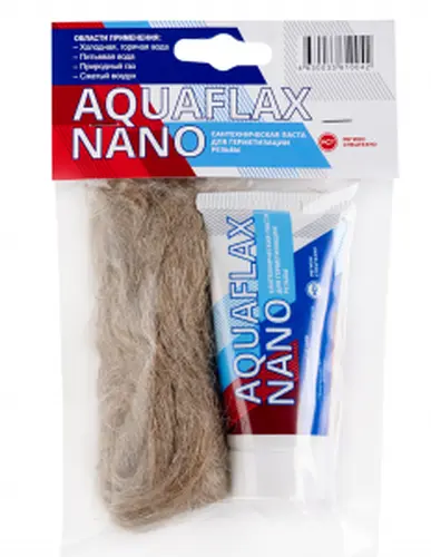 Набор паста AquaflaxNano 80 гр. туба +20 гр. лён (ЕВРО) обеспечивает быструю пропитку льняных волокон, способствуя долговечности и надежности уплотнения, облегчает дальнейшую юстировку резьбовых соединений, а так же помогает облегчить демонтаж соединения спустя несколько лет.