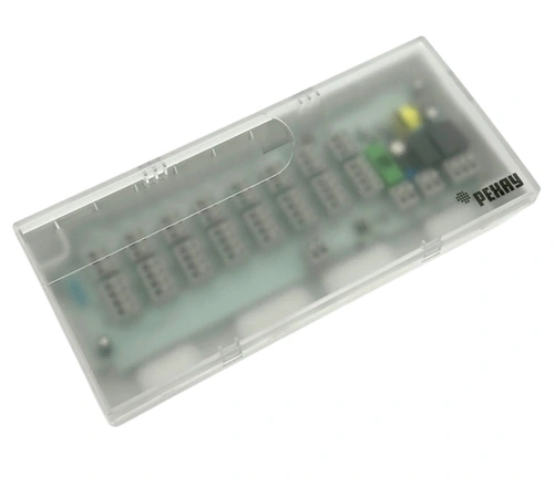 Панель клеммная 8 каналов 230 В Рехау, электромонтажный блок-клеммник для подключения и управления элементами системы автоматизации отопления Rehau, в частности серии NEA. Она служит для удобной и безопасной коммутации проводов от терморегуляторов и сервоприводов к питающему напряжению 230 В, объединяя до 8 управляющих каналов на одной панели.
