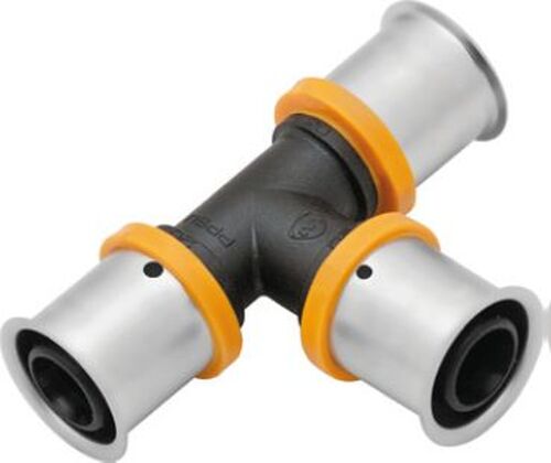 Пресс-тройник PPSU 26х3/26х3/26х3 арт. 1009257016 (9024.54) KAN-Therm предназначен для создания неразъемных соединений на трубопроводах из многослойных полиэтиленовых материалов PE-Xc и PE-RT с антидиффузионной защитой. Используется в системах водоснабжения и отопления.