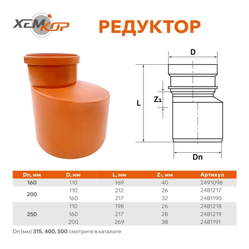Редукция ПВХ наружная канализация Ду 160х110 ХЕМКОР