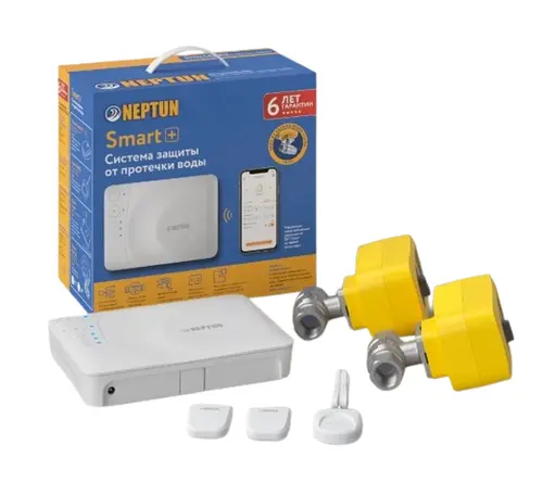 Система 1/2" PROFI Smart+ Neptun предназначена для обнаружения и локализации протечек воды в системах водоснабжения и отопления. Система позволяет заблокировать подачу воды и проинформирует о возникшей аварии звуковым и световым сигналами, а также отсылкой PUSH-уведомления на смартфон пользователя.