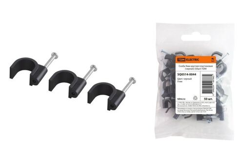 Скоба 9 мм круглая пластиковая черная (50 шт) TDM