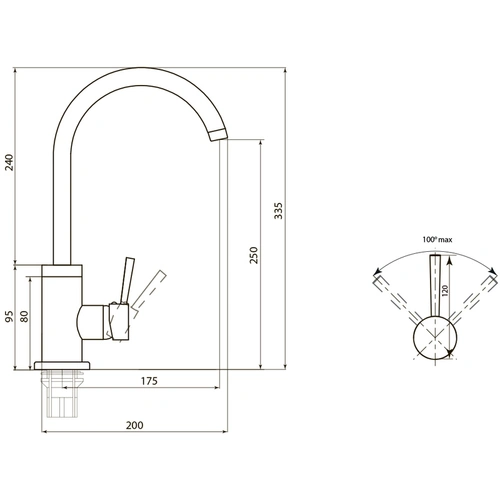 Угол поворота 100°. Гарантия на корпус смесителя 5 лет/комплектующие 2 года.