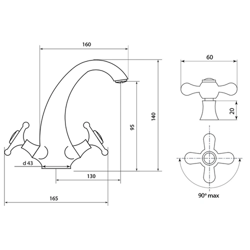 Смеситель для умывальника двуручный с литым изливом О10 СЛАВЕН предназначен для пуска/остановки и смешения холодной и горячей воды, регулировки количества и температуры водной струи.