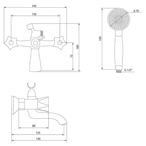 Смеситель для ванны двуручный с коротким литым изливом Е30 СЛАВЕН предназначен для пуска/остановки и смешения холодной и горячей воды, регулировки количества и температуры водной струи.