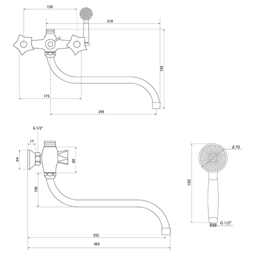 Смеситель для ванны двуручный универсальный Е31 СЛАВЕН предназначен для пуска/остановки и смешения холодной и горячей воды, регулировки количества и температуры водной струи.