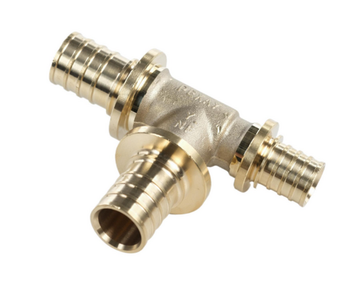 Тройник латунный с уменьшенным торцевым проходом 25х25х16 Рехау - аксиальный фитинг, предназначен для разветвления трубопровода с различными диаметрами труб, используется в системах водоснабжения и отопления с трубами из сшитого полиэтилена.