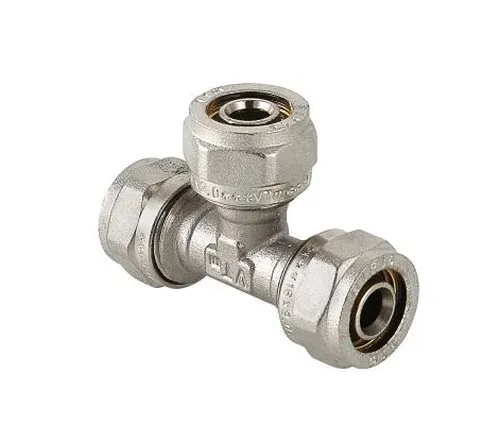 Тройник переходной никелированный 32х32х26 обжимной для металлопластиковых труб VALTEC арт. VTm.331.N.323226 предназначен для создания неразъемных соединений трубопроводов из металлополимерных труб (PE-X/AL/PE-X, PE/AL/PE,PE-Х/AL/PE,PE/AL/PE-RT и т.п.), а также труб из сшитого полиэтилена PE-X и полиэтилена повышенной термостойкости PE-RT, в системах питьевого и хозяйственного водопровода, горячего водоснабжения, отопления, а также на технологических трубопроводах, транспортирующих жидкости, не агрессивные к материалам труб и соединителей.
