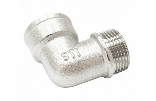 Угольник латунный никелированный с внутренней/наружной резьбой Ду 25 (1") STI используется для устройства внутренних систем отопления, холодного и горячего водоснабжения.