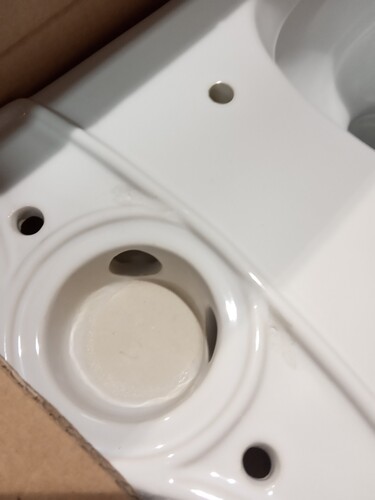 Потёртости на крышке + минимальные потёртости на унитазе + арматура без заводской упаковки.
