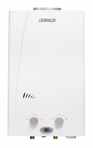 Водонагреватель проточный газовый SUPERLUX 10L CF NG NEW арт. 3632386 ARISTON. Предназначен для мгновенного нагрева воды до необходимой температуры. Монтаж настенный вертикально, работа на природном газе, работа от батареек 2х1,5 V LR20. Входное давление газа 20 мбар. 10 форсунок, диаметр дымоотвода 110 мм.