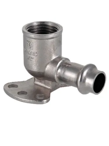 Водорозетка нержавеющая сталь 15х1/2" VALTEC обеспечивает соединение тонкостенной стальной трубы с резьбовым элементом (в частности, патрубком сантехнического смесителя) монтируемой системы под углом 90°.