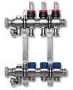 Коллекторный блок нержавеющая сталь с расходомерами 3 выхода и термостическим клапаном SANHA-Heat