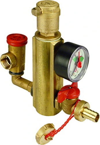 Группы безопасности серии R554 используются в замкнутых системах теплоснабжения с расширительным баком и максимальной мощностью 50 квт. В комплект входит: коллектор, воздухоотводчик R88I, предохранительный клапан 3бара- R140R, манометр 0÷4 бара- R225D, сливной кран-R608D.