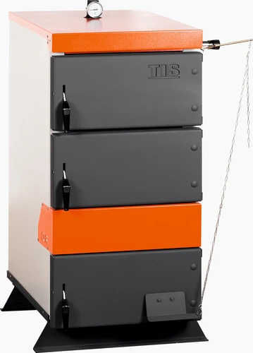 Твердотопливный энергонезависимый котел длительного горения серии TIS PRO DR низкотемпературный водогрейный, работающий на твердом топливе (древесина, уголь, торф, древесный брикет) и предназначен для теплоснабжения индивидуальных жилых домов и прочих зданий, оборудован открытыми или закрытыми системами отопления с естественной или принудительной циркуляцией теплоносителя. Котёл оснащен механическим регулятором тяги.