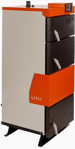 Твердотопливный котел длительного горения серии TIS UNI низкотемпературный водогрейный, работающий на твердом топливе (древесина, уголь, торф, древесный брикет) и предназначен для теплоснабжения индивидуальных жилых домов и прочих зданий, оборудован открытыми или закрытыми системами отопления с естественной или принудительной циркуляцией теплоносителя. Котел оснащен интеллектуальным пультом управления и модулируемым вентилятором.