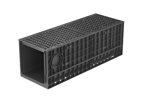 Лоток 300.339 h346 с решеткой чугунной С250 (черный) Ecoteck комплектуется с чугунной решеткой. Решетка защищает каналы от попадания нежелательных элементов, мусора и других вещей. Подходит для использования в коттеджном строительстве, парковочных зонах, станциях СТО и АЗС, автомобильных дорог, магистральной канализации, промышленных зонах, складах, территории предприятий.
