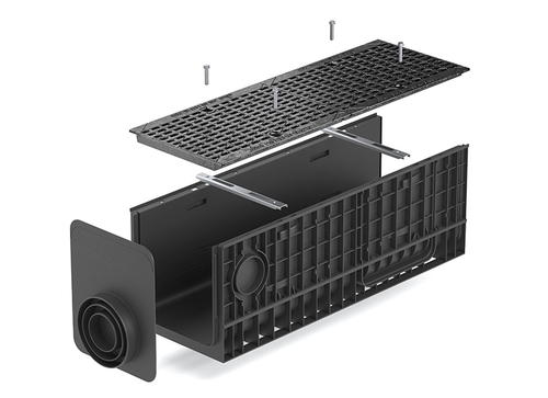 Лоток 300.339 h346 с решеткой чугунной С250 (черный)