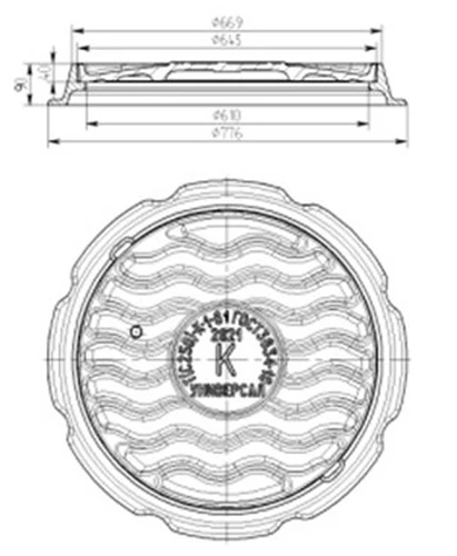 Люк чугунный тяжелый "Т" (С250) - В (87 кг) h90, 2 уха - сооружение для безопасного проникновения в подземные коммуникации. Люк предназначен для городских автомобильных дорог.