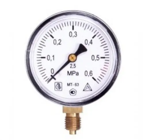 Манометр МТ-63 0-0,4 МПа предназначен для измерения давления неагрессивных, некристаллизирующихся жидкостей, газа и пара.