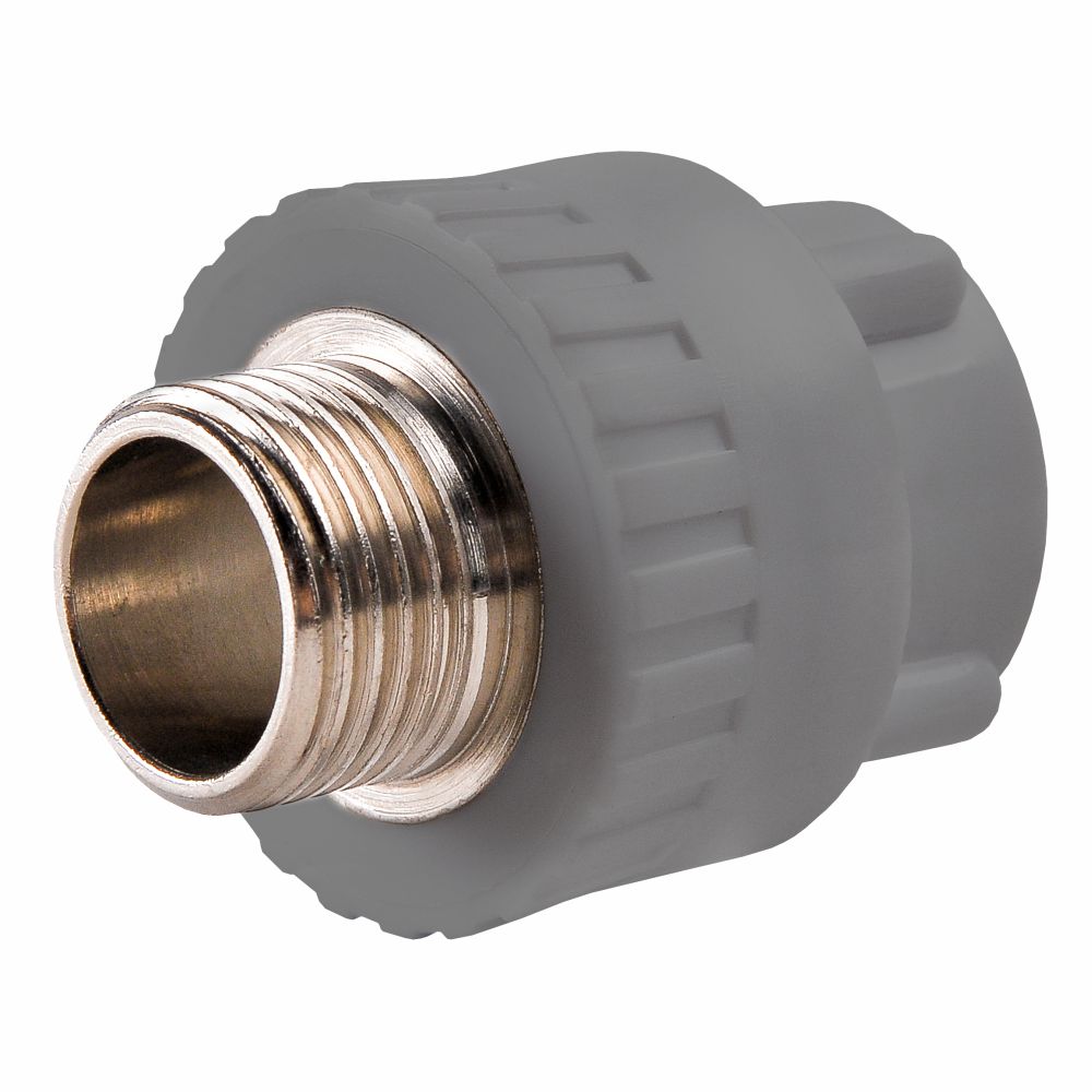 Муфта полипропиленовая комбинированная с наружной резьбой 32х3/4" серая PRO AQUA