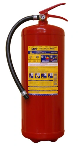Огнетушитель порошковый ОП-10 (з) МИГ предназначен для защиты помещений производственного и хозяйственного назначения, применяется в бытовых условиях, на автомобильном, железнодорожном транспорте для тушения пожаров классов А (твердых горючих веществ), В (жидких горючих веществ), С (газообразных горючих веществ) и E (электроустановок, находящихся под напряжением до 1000 В). Огнетушители не предназначены для тушения загораний щелочных и щелочноземельных металлов и материалов, горение которых может происходить без доступа воздуха.