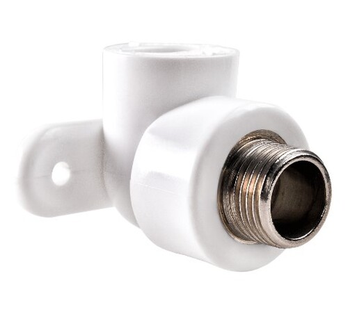 Отвод полипропиленовый комбинированный с креплением наружная резьба 25х1/2" белый РВК
