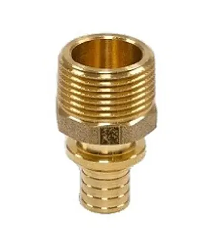 Переходник латунный PE-X с наружной резьбой Ду 16х3/4" Рехау - аксиальный фитинг, представляет собой переходник от аксиального соединения к резьбовому, используется в системах водоснабжения и отопления с трубами из сшитого полиэтилена.