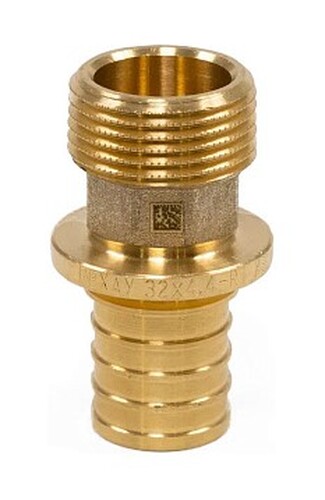 Переходник латунный PE-X с наружной резьбой Ду 32х1" Рехау - аксиальный фитинг, представляет собой переходник от аксиального соединения к резьбовому, используется в системах водоснабжения и отопления с трубами из сшитого полиэтилена.