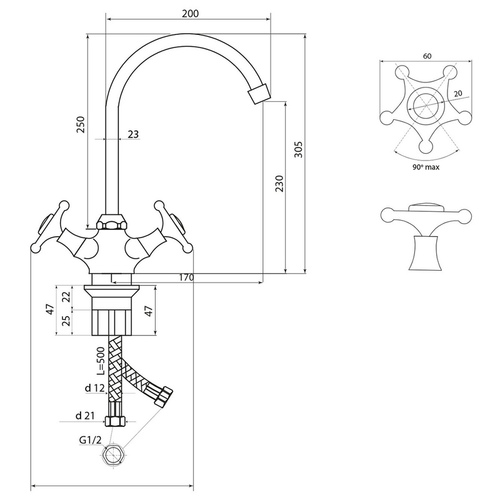 Смеситель для мойки двуручный с высоким изливом И22 СЛАВЕН арт. СЛ-ДВ-И22 предназначен для пуска/остановки и смешения холодной и горячей воды, регулировки количества и температуры водной струи.