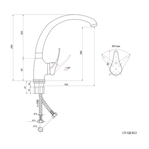 Смеситель для мойки одноручный с высоким изливом В22 СЛАВЕН арт. СЛ-ОД-В22 предназначен для пуска/остановки и смешения холодной и горячей воды, регулировки количества и температуры водной струи.