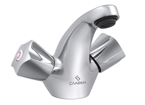 Смеситель для умывальника двуручный с литым изливом Е10 СЛАВЕН предназначен для пуска/остановки и смешения холодной и горячей воды, регулировки количества и температуры водной струи.