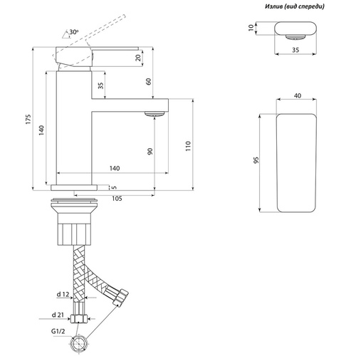 Смеситель для умывальника одноручный с литым изливом Н10 СЛАВЕН арт. СЛ-ОД-Н10 предназначен для пуска/остановки и смешения холодной и горячей воды, регулировки количества и температуры водной струи.