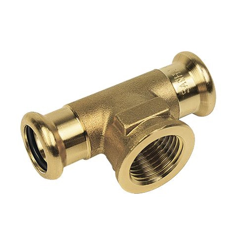 Тройник бронзовый с внутренней резьбой 22х1/2"х22 пресс SANHA