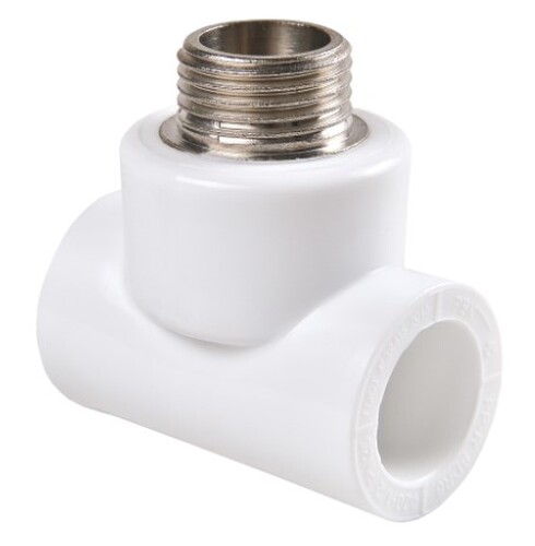 Тройник полипропиленовый комбинированный с наружной резьбой 32х1/2"х32 белый РВК