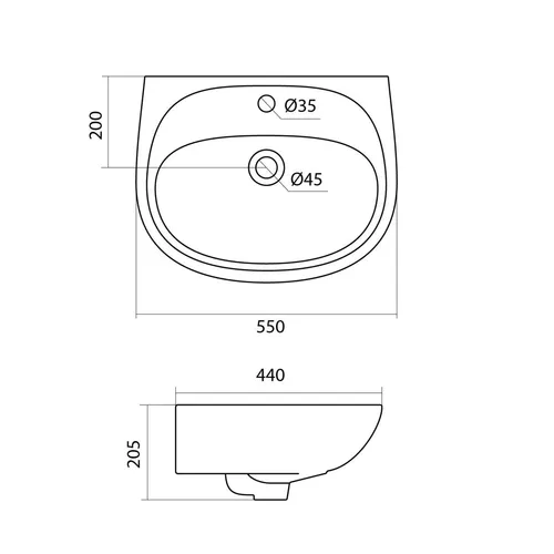 Умывальник Анимо 55 отверстие под смеситель SANTEK