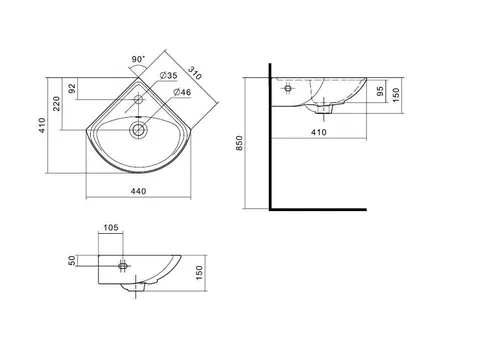 Умывальник "Ирис-36" угловой, отверстие под смеситель SANTEK предназначен для установки на мебельный модуль. Современный и стильный он придаст ванной комнате еще больше комфорта и эстетики.