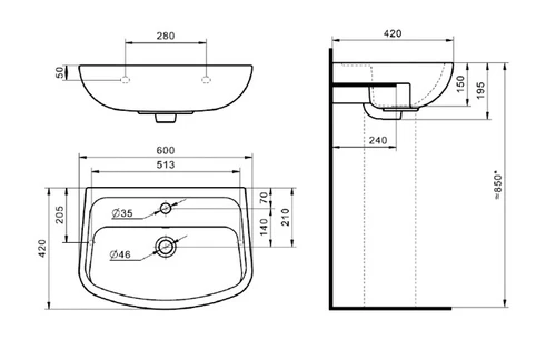 Умывальник Лонги 60 отверстие под смеситель SANTEK