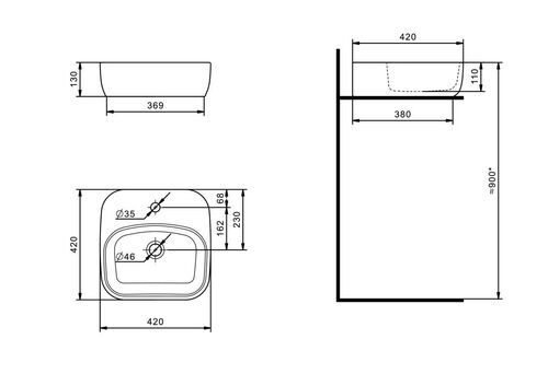 Умывальник накладной Одри 42х42 Soft SANTEK