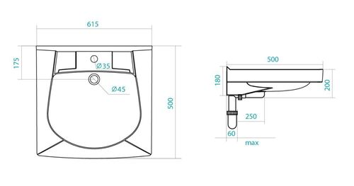 Умывальник Пилот 60х50 с кронштейнами и сифоном SANTEK